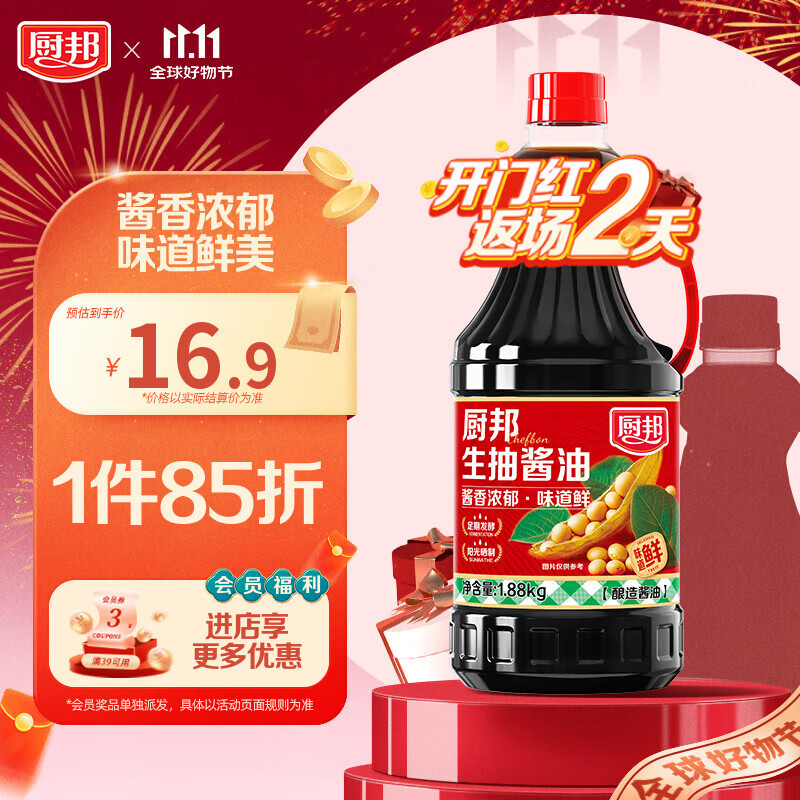 包邮 厨邦酱油 生抽酱油【黄豆酱油】1.88kg 酿造酱油 炒菜提鲜 调味品